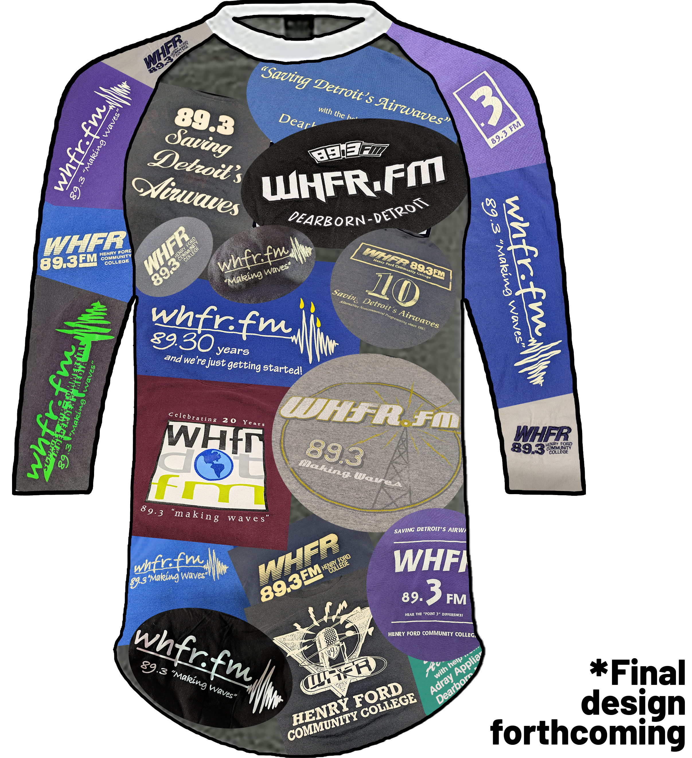 We dug deep into our archives to find every t-shirt design we’ve ever made - yes, every single one! These designs will come together in a bold, creative collage that captures the spirit and evolution of WHFR through the years.